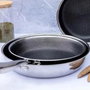De Tri-Ply constructie van de Morelia Hybrid pan bestaat uit drie samengeperste lagen: een kern van aluminium, ingesloten tussen twee lagen roestvrij staal. Deze combinatie zorgt voor een snelle en gelijkmatige warmteverdeling.